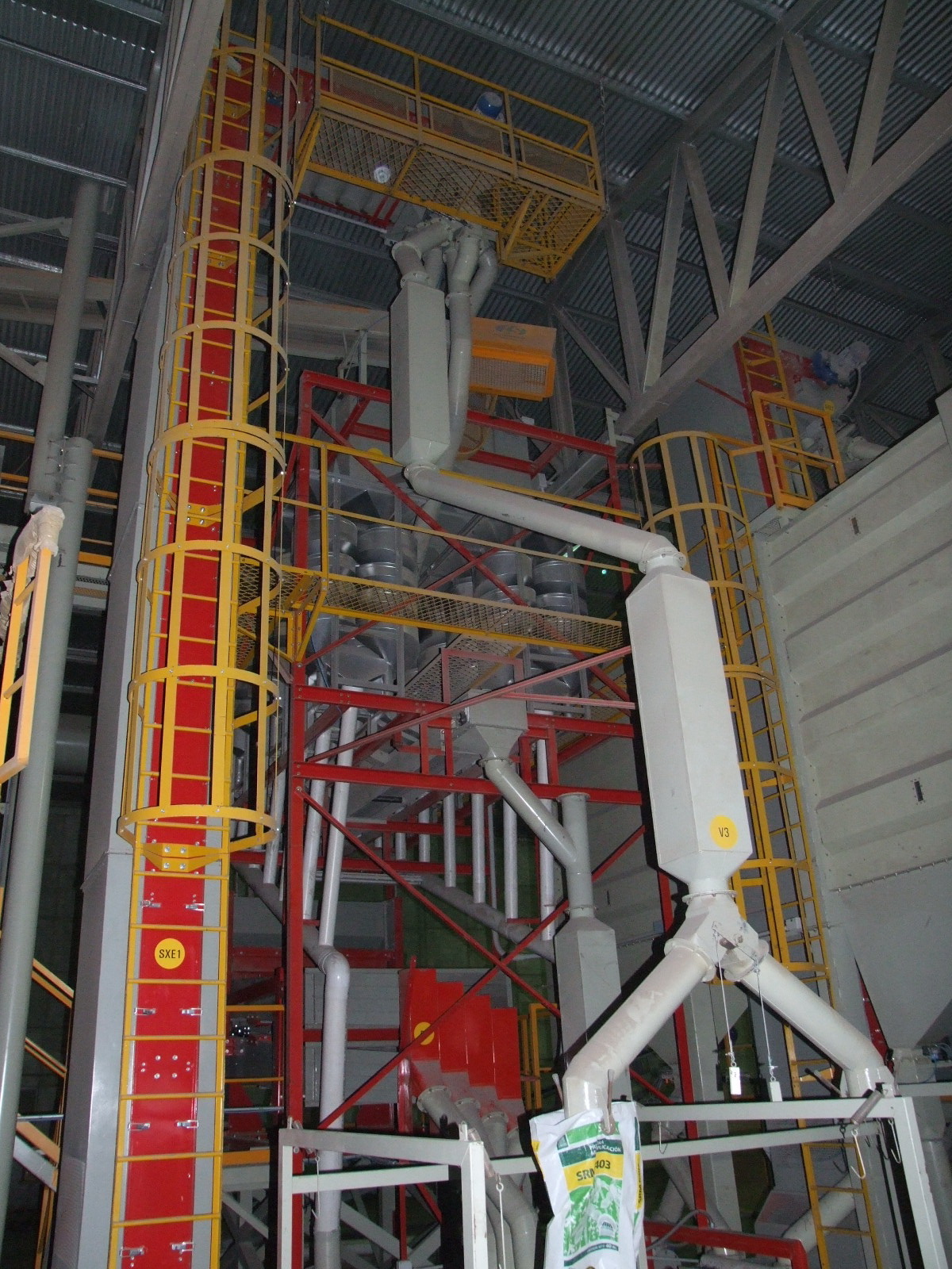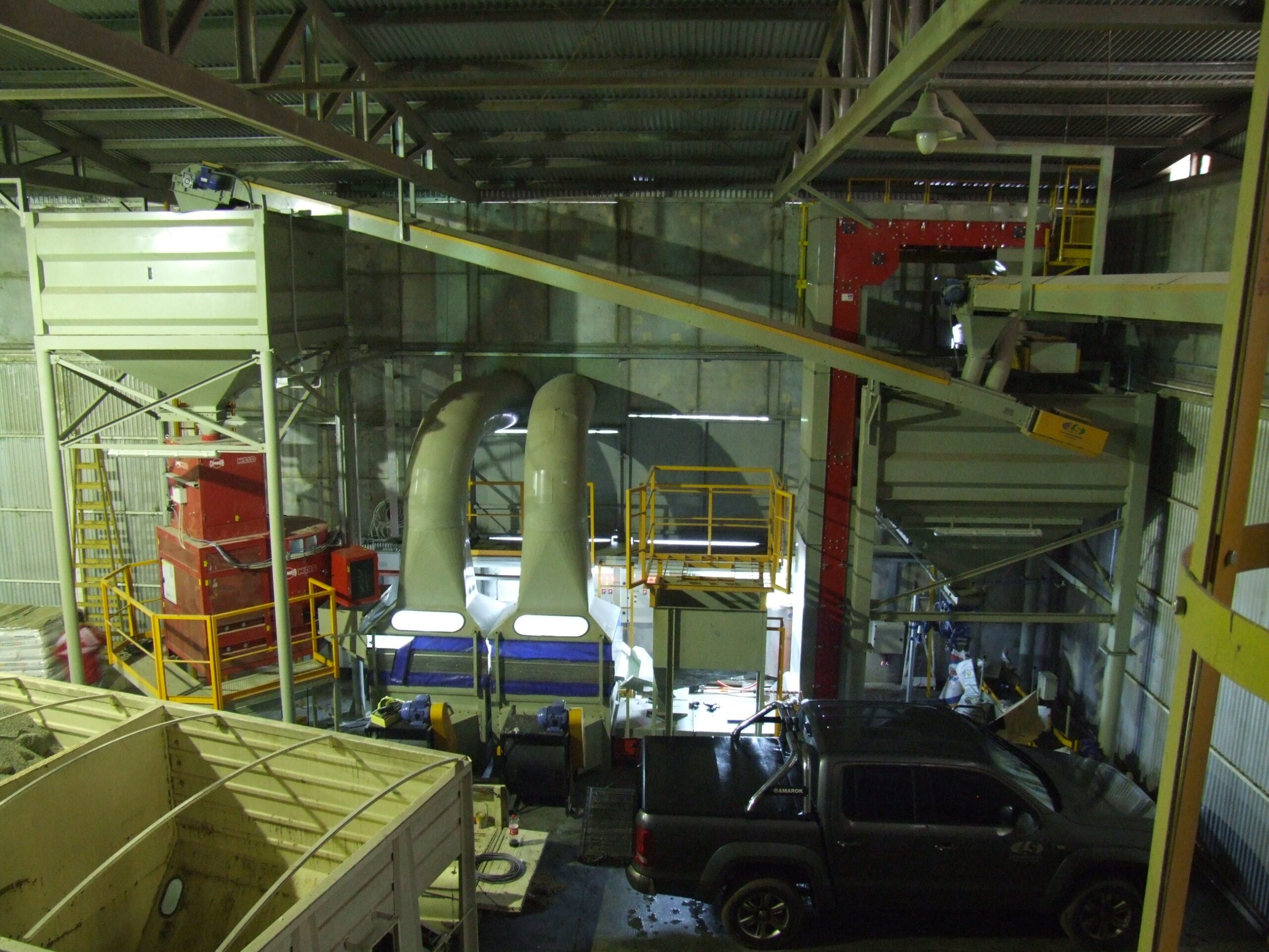 Planta de clasificacion de SEMILLAS con limpieza, espirales, padronizador y mesa denimetrica, con automatizacion mediante PLC y pantalla HMI. Planta de tratamiento con tuneles de secado.